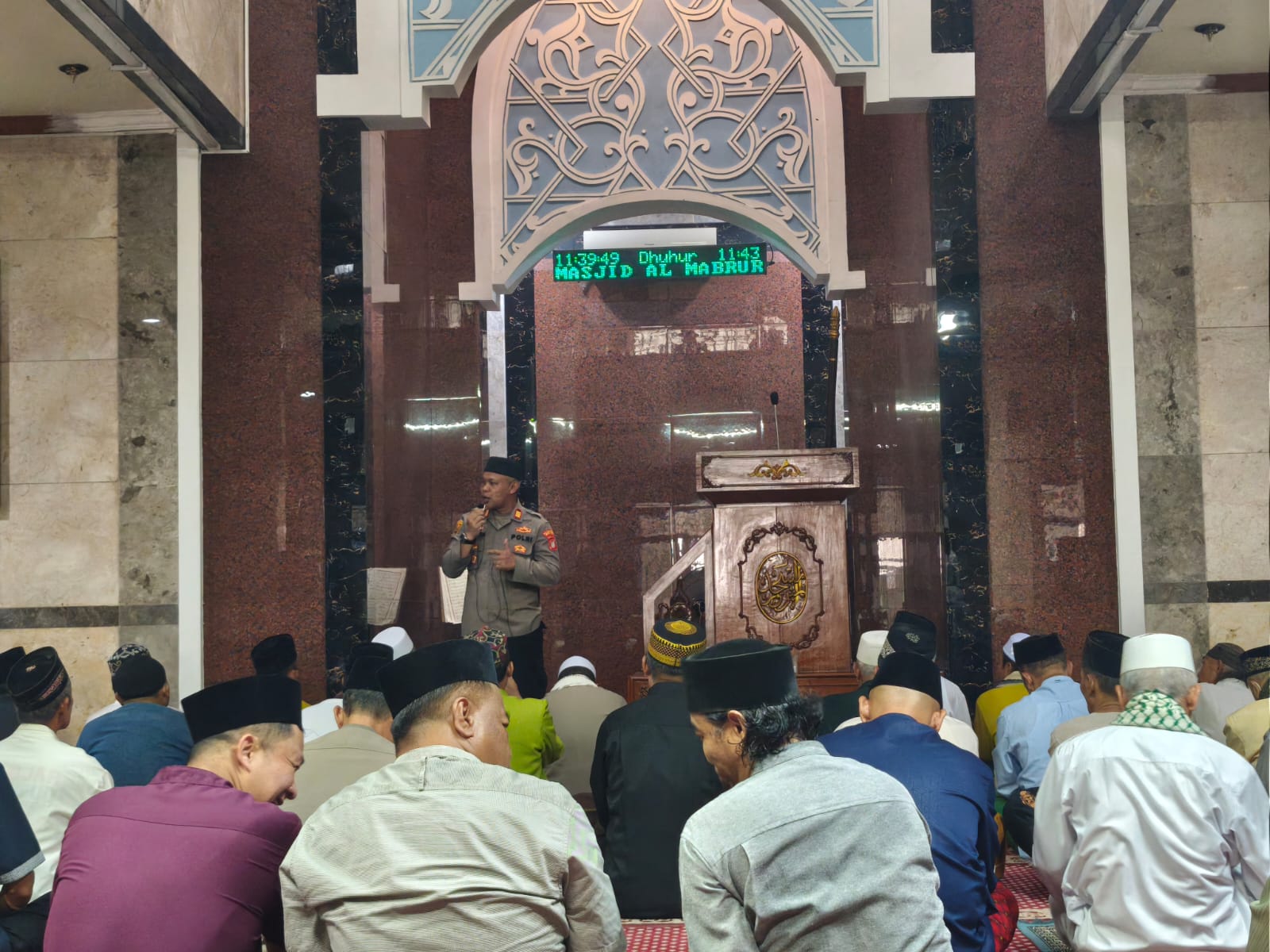 Pada kesempatan tersebut, sebelum pelaksanaan Sholat Jumat, Kapolsek menyampaikan pesan-pesan kamtibmas kepada para jamaah. Ia menekankan pentingnya peran seluruh warga dalam menjaga situasi tetap aman dan kondusif, khususnya dalam mencegah terjadinya tawuran remaja yang belakangan marak terjadi di beberapa wilayah.