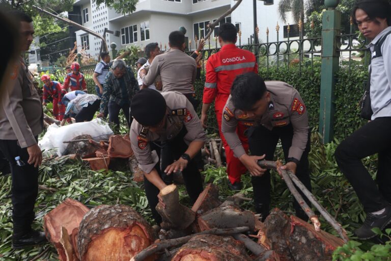 Ditpamobvit Polda Metro Jaya Gerak Cepat Evakuasi Pohon Tumbang Dekat Stasiun MRT Jakarta