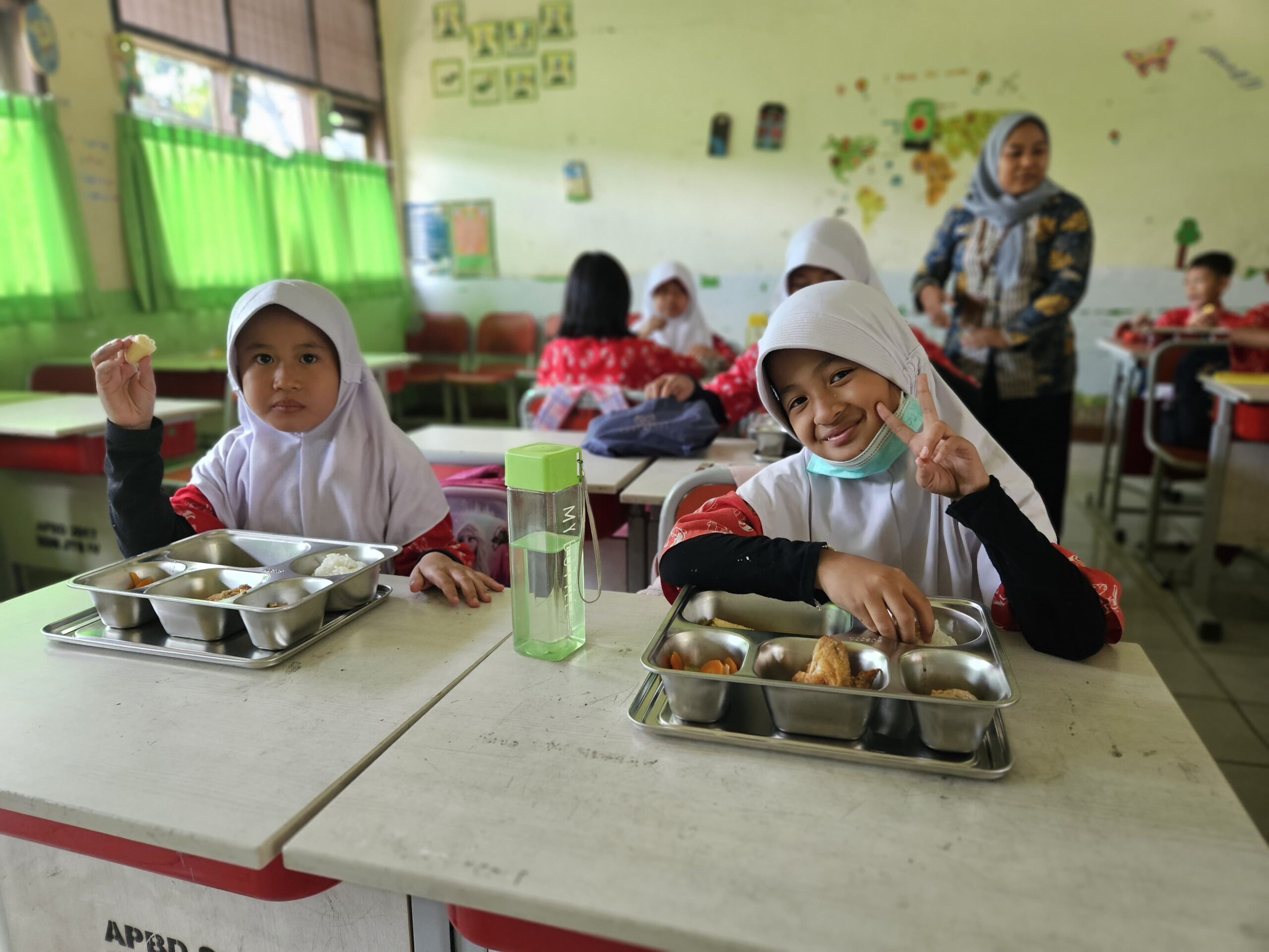 “Senang banget, makanannya enak dan sehat. Terima kasih sudah dikasih makan gratis. Jadi semangat belajar di sekolah,” ujarnya sambil tersenyum malu-malu.