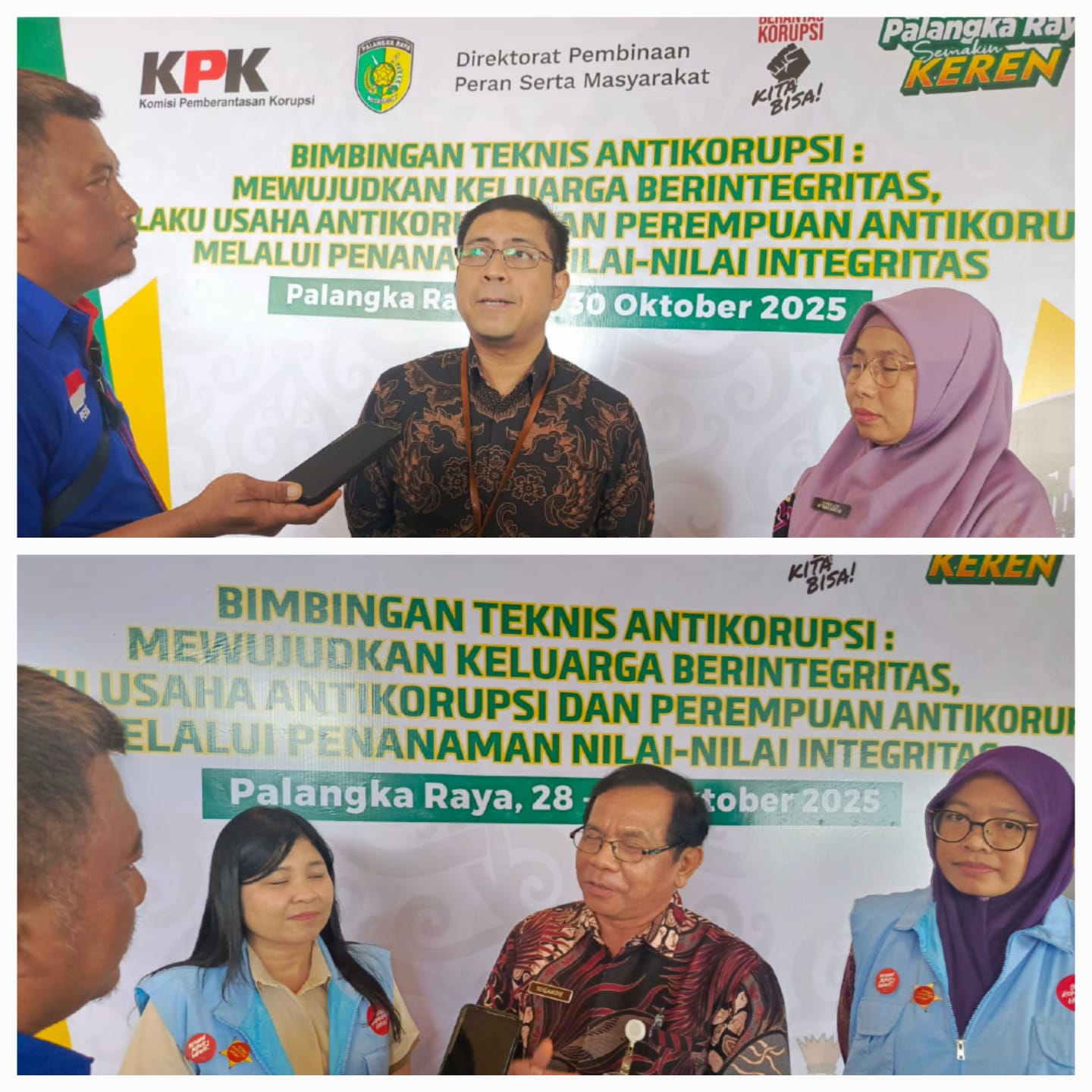David Sepriasa Plh. Direktur Pembinaan Peran Serta Masyarakat Komisi Pemberantasan Korupsi (KPK RI) disela-sela rehat menjelaskan kegiatan Kolaborasi Pemerintah Kota Palangka Raya dan KPK Bimtek Pelaku Usaha Anti Korupsi. Pesertanya berasal dari BUMN, BUMD, Asosiasi, Swasta, dan UMKM. Tujuannya adalah mengedukasi pentingnya nilai-nilai integritas dan antikorupsi. Apa itu korupsi, gratifikasi, penyuapan, pemerasan, pengadaan barang dan jasa dan lain-lain. Bimtek dibagi dua sesi. Sesi pertama pagi hari peserta diberikan materi dan sesi kedua FGD (Focus Group Discussion).