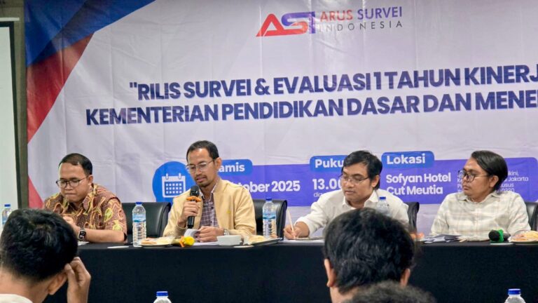 EdhitNews.com (Jakarta) – Lembaga Arus Survei Indonesia (ASI) merilis hasil survei nasional bertema “Evaluasi 1 Tahun Kinerja Kementerian Pendidikan Dasar dan Menengah”. Hasilnya, sebanyak 76,4% masyarakat mengaku puas kinerja Kementerian Pendidikan Dasar dan Menengah (Kemendikdasmen). “Sebanyak 76,4% masyarakat mengaku puas…