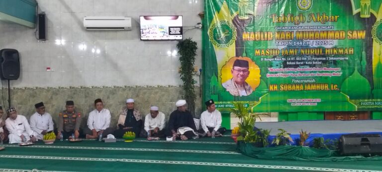 Kapolsek Bekasi Barat Hadiri Maulid Nabi, Sampaikan Pesan Kamtibmas kepada Warga Jakasampurna