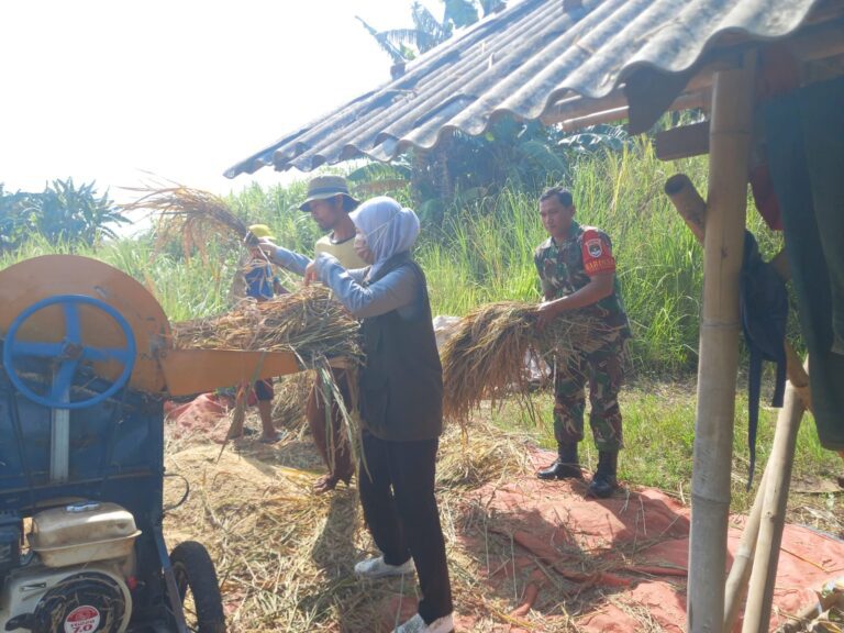 Perkuat Ketahanan Pangan, Babinsa Padurenan Bersama Tim PPL Pertanian Dampingi Poktan Jambon Jaya Panen Padi