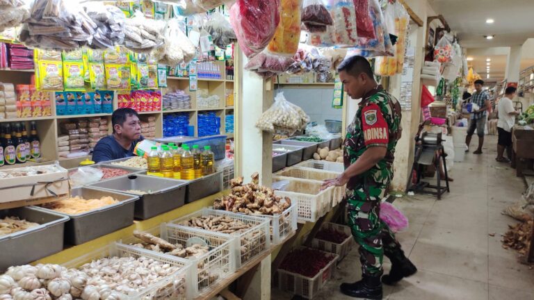 Babinsa Kodim 0507/Bekasi Jalin Silaturahmi dan Pantau Harga Sembako Lewat Komsos di Pasar Tradisional