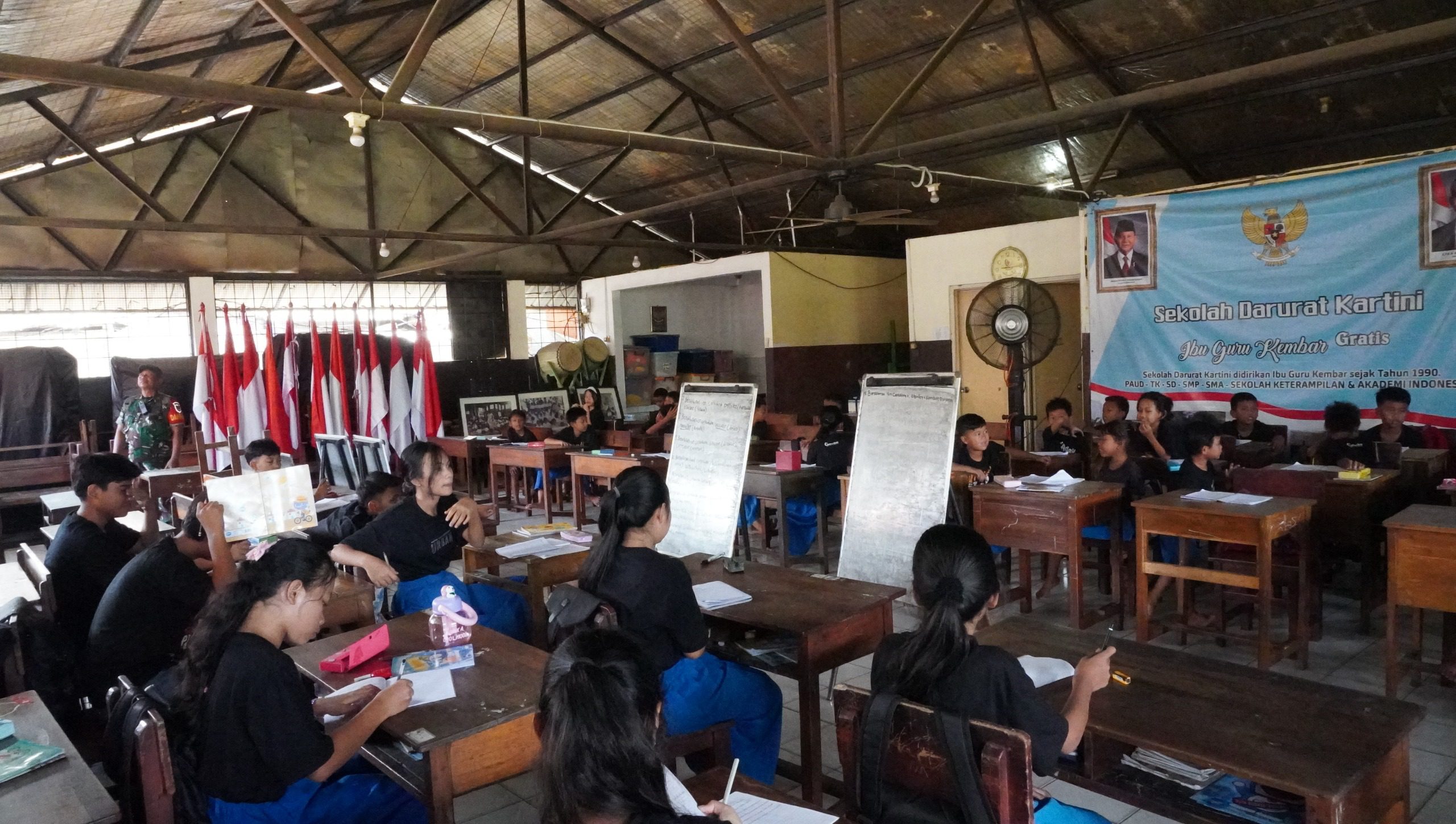 Sekolah yang dipimpin oleh “Ibu Guru Kembar”, Sri Rosyati dan Sri Irianingsih, berdiri dengan semangat pengabdian sejak tahun 1990 melalui Yayasan Sanggar Kartini. Mengusung motto *“Berbagi Agar Tidak Merugi Hidup di Dunia”*, sekolah ini telah memberikan layanan pendidikan gratis mulai dari PAUD, TK, SD, SMP, SMA hingga Sekolah Keterampilan, bahkan kini telah berkembang menjadi Akademi Indonesia Sekolah Darurat Kartini.