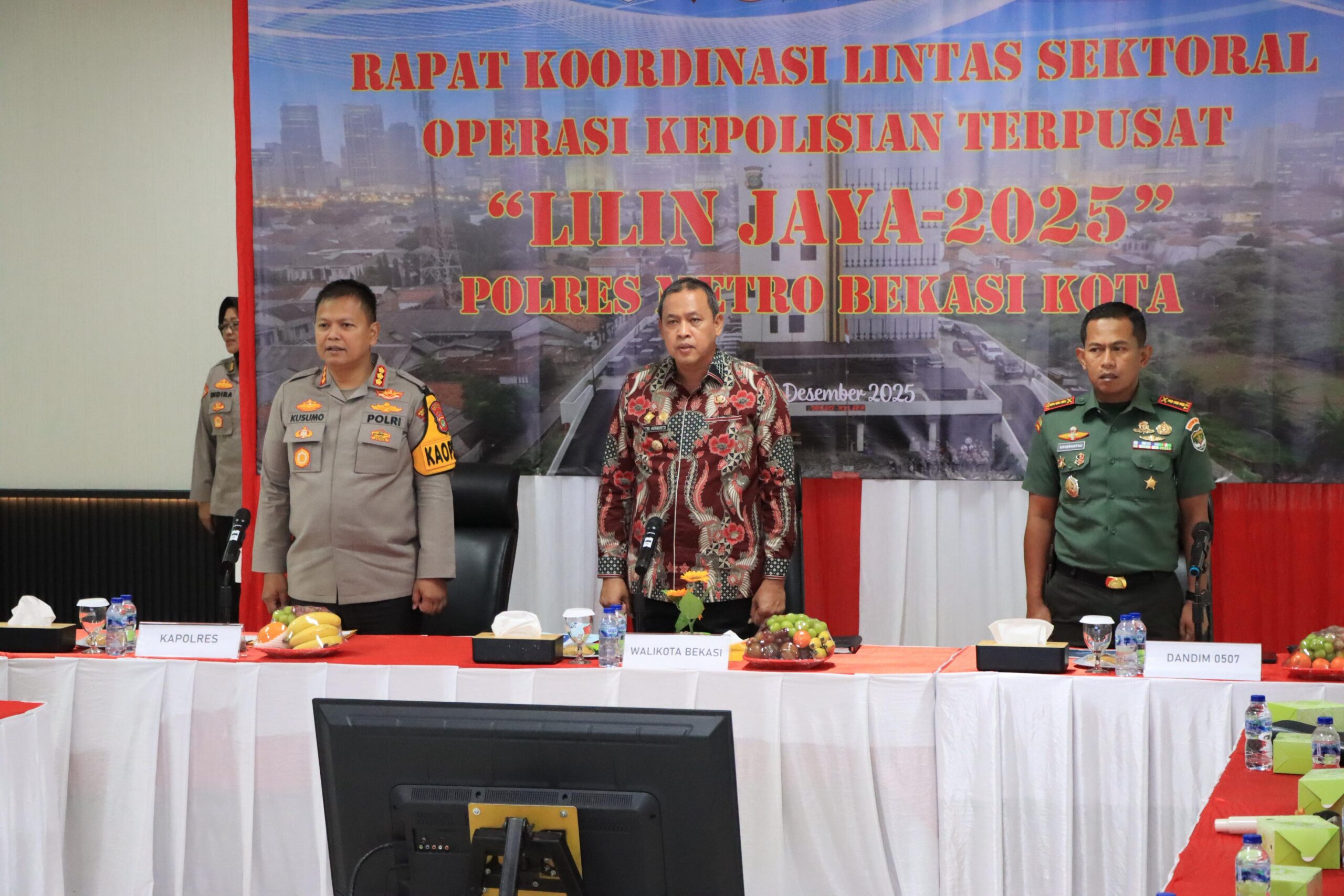 Rapat koordinasi tersebut dilaksanakan sebagai langkah strategis untuk menyamakan persepsi serta memperkuat sinergi antarinstansi terkait dalam rangka persiapan pengamanan perayaan Natal dan Tahun Baru 2026 di wilayah Kota Bekasi. Kegiatan ini dihadiri langsung oleh Walikota Bekasi Dr. Tri Adhianto Pejabat TNI, Polri, pemerintah daerah, serta instansi pendukung lainnya.