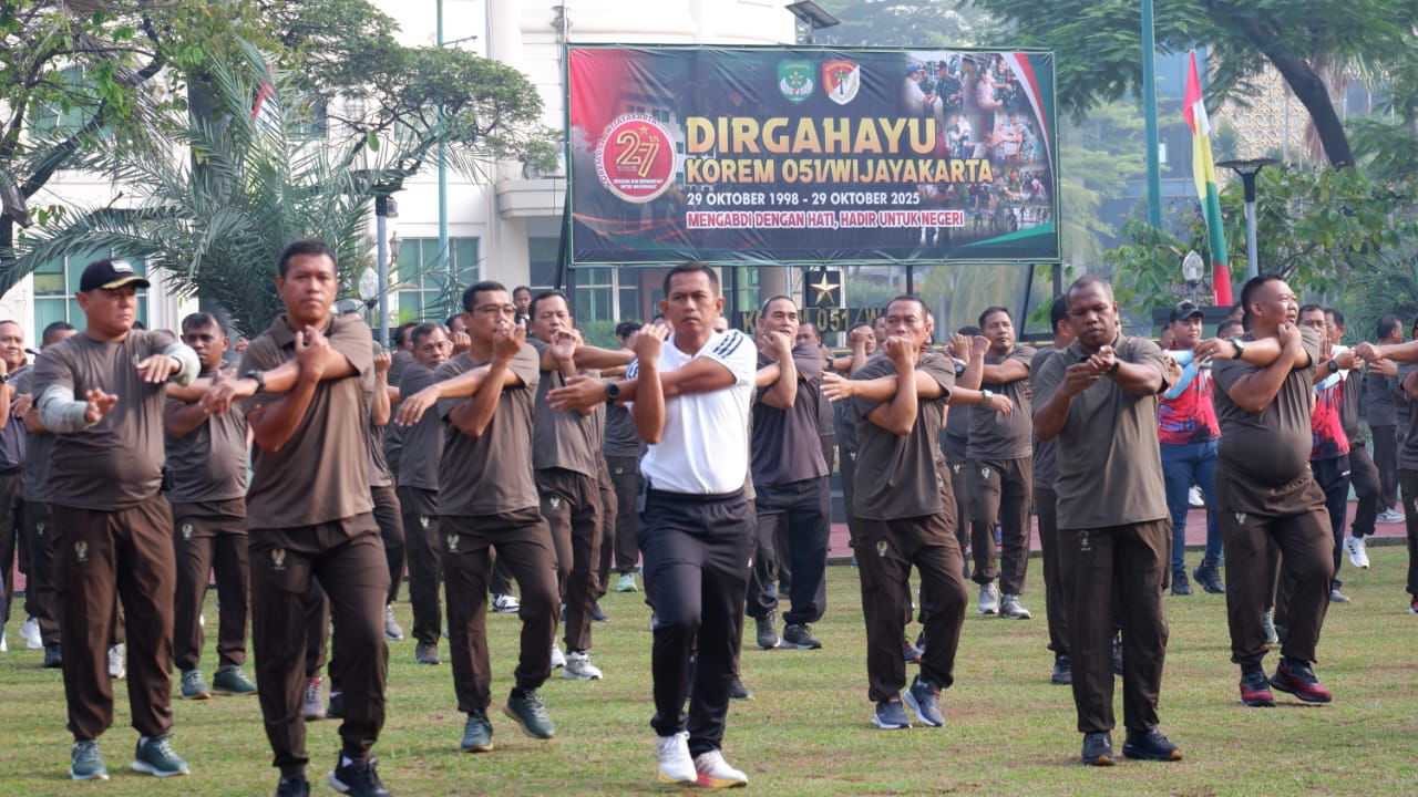 Kegiatan diawali dengan olahraga bersama yang diikuti oleh seluruh personel TNI dan undangan sebagai wujud kebersamaan dan semangat kekompakan antar satuan di lingkungan Korem 051/Wijayakarta. Suasana penuh keakraban dan semangat persaudaraan tampak menyertai jalannya kegiatan.