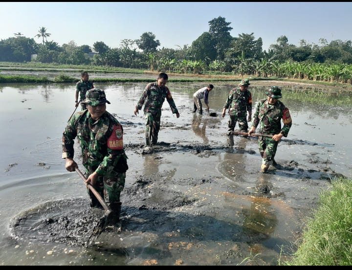 Kegiatan yang dilakukan secara gotong royong ini mencerminkan semangat kebersamaan antara TNI dan masyarakat dalam mendukung swasembada pangan. Terlihat langsung Danramil Mayor Suranto turun ke lapangan dengan membajak lahan sawah seluas kurang lebih 3 hektar, serta turut melakukan penaburan benih padi secara manual bersama petani setempat.