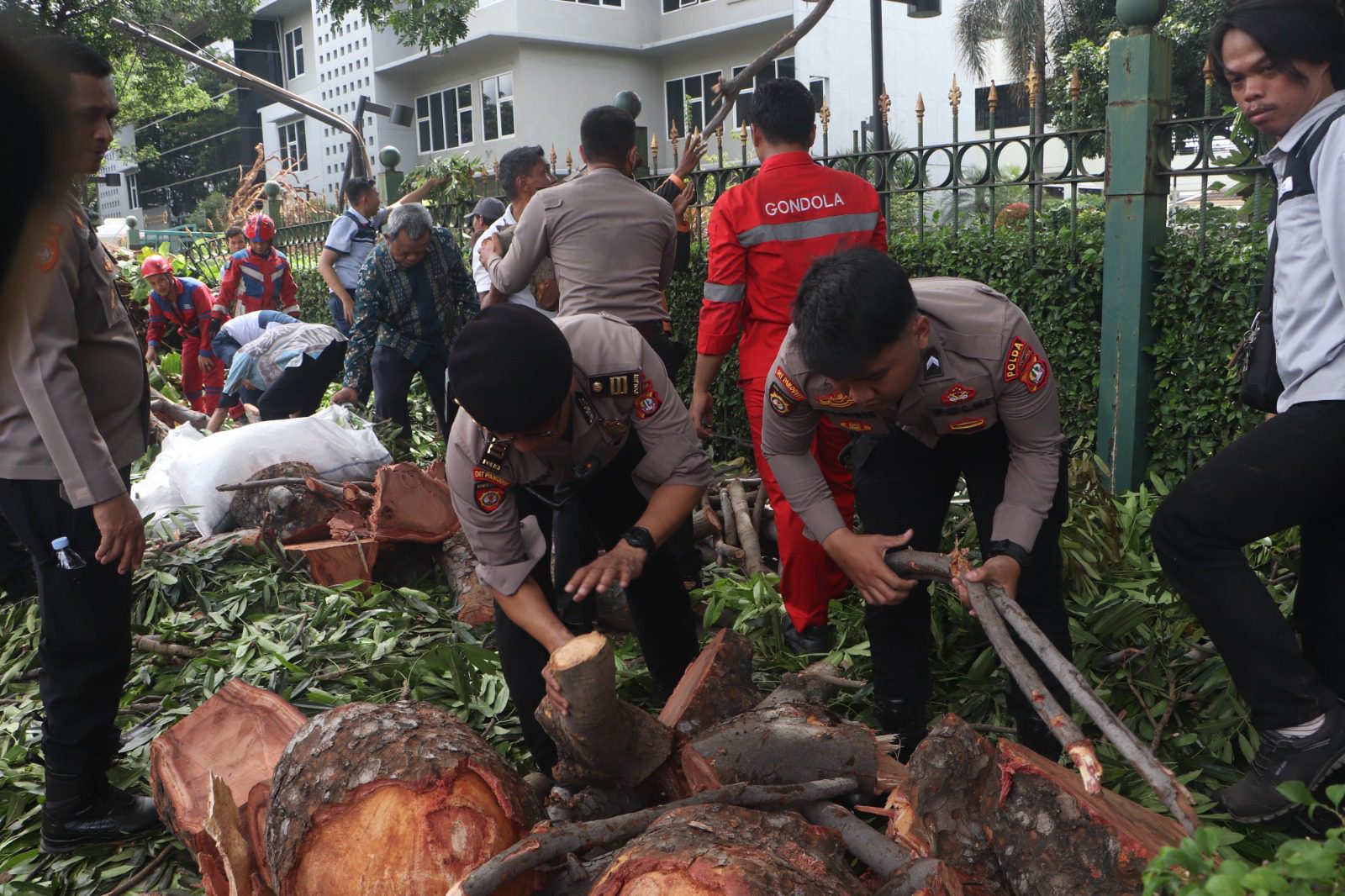 Ia menjelaskan bahwa Kanit Subdit Waster Ditpamobvit, Kompol Nurhadi, memimpin langsung proses penanganan di lokasi. Penanganan dilakukan bersama Kapolsek Kebayoran Baru, Kasubdit Gatur Ditlantas Polda Metro Jaya, serta Dinas Pertamanan DKI Jakarta. Kolaborasi tersebut mencakup pengamanan area, rekayasa lalu lintas, dan evakuasi batang pohon yang menutup jalan.