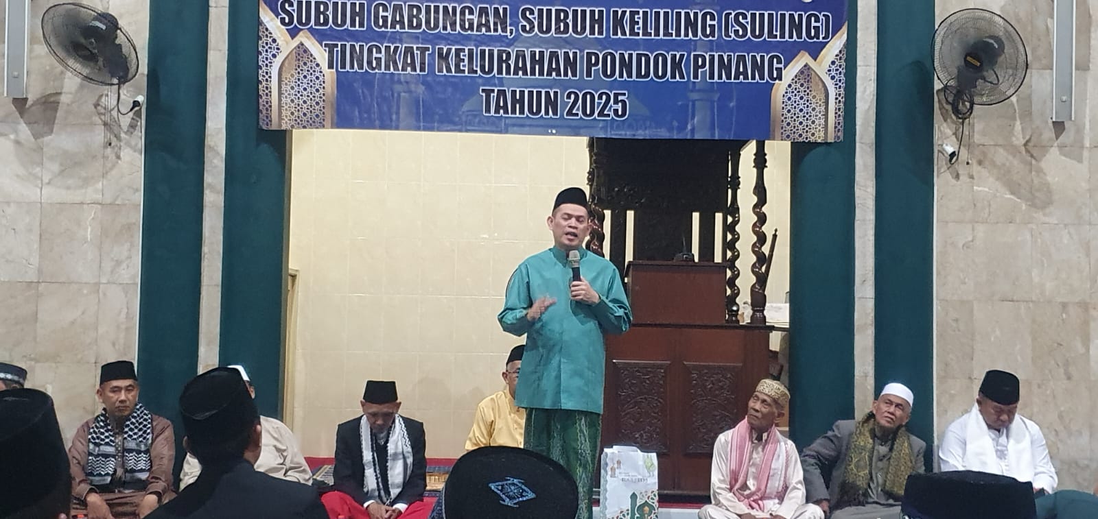 EdithNews.com (Jakarta Selatan) 27 April 2025 – Dewan Masjid Indonesia (DMI) ranting Kelurahan Pondok Pinang yang dipimpin oleh Ustadz Hanafi, yang dihadiri Lurah Pondok Pinang Wawan Hermawan, mengadakan Program Subuh Keliling (SULING) minggu (27/4), bertempat di Masjid Jami Darussalam