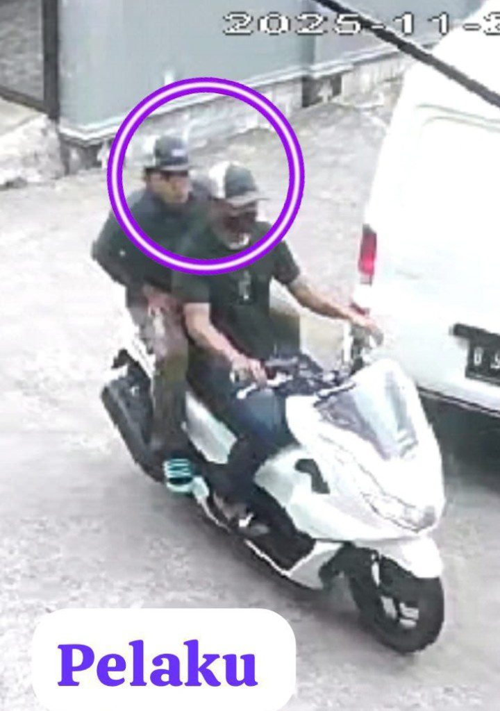 Dari hasil pemeriksaan, pelaku diduga berjumlah dua orang dengan ciri-ciri yang terekam kamera, masing-masing menggunakan pakaian bernada gelap serta topi dan masker. Nomor polisi kendaraan pelaku tidak terbaca jelas.