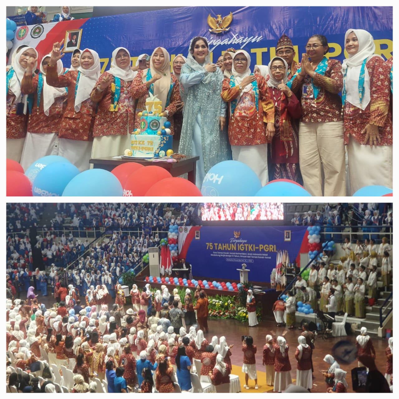 EdithNews.com (Jakarta) 24 Mei 2025 — Ikatan Guru Taman Kanak-Kanak Indonesia Persatuan Guru Republik Indonesia (IGTKI – PGRI) memperingati Hari Ulang Tahun (HUT) ke-75 secara meriah di Padepokan Pencak Silat, Taman Mini Indonesia Indah (TMII), Jakarta. Kegiatan ini dihadiri perwakilan IGTKI dari 34 provinsi se-Indonesia, termasuk IGTKI-PGRI Kabupaten Bekasi.