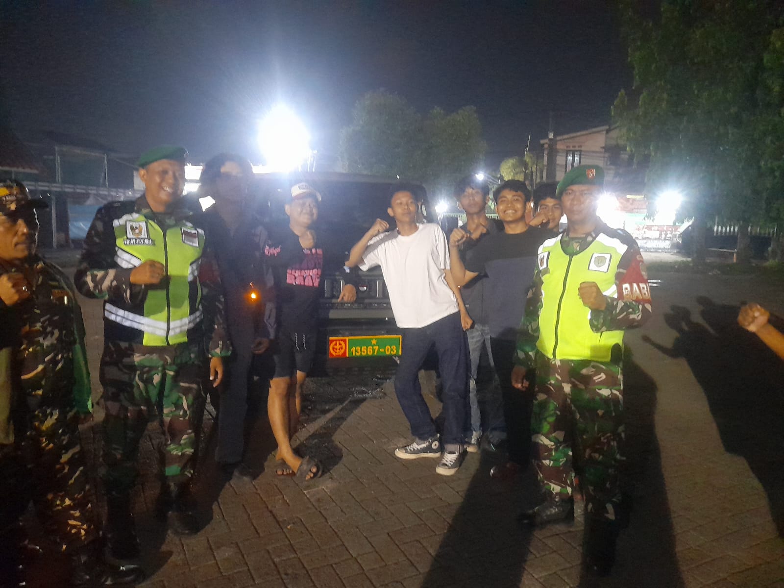 Jaga Malam dengan Semangat, Babinsa Koramil 05/Bantar Gebang Bersama Tiga Pilar dan Komduk Keliling Wilayah Ciptakan Rasa Aman