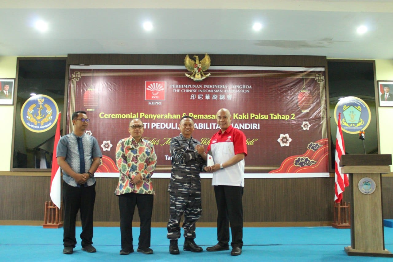 EdithNewa.com (TNI Angkatan Laut) – Kepala Rumah Sakit Angkatan Laut (Karumkital) Dr. Midiyato Suratani Kolonel Laut (K) dr. Widya Wirawan, Sp.PD., M.H., FINASIM., menghadiri kegiatan “Ceremonial Penyerahan dan Pemasangan Kaki Palsu Tahap 2” yang diselenggarakan oleh organisasi Perhimpunan Indonesia Tionghoa (INTI) Kepulauan Riau. Acara berlangsung di Gedung Serba Guna Pulau Serasan Rumkital Dr. Midiyato Suratani Tanjungpinang, Provinsi Kepri. Sabtu (05/07/2025)