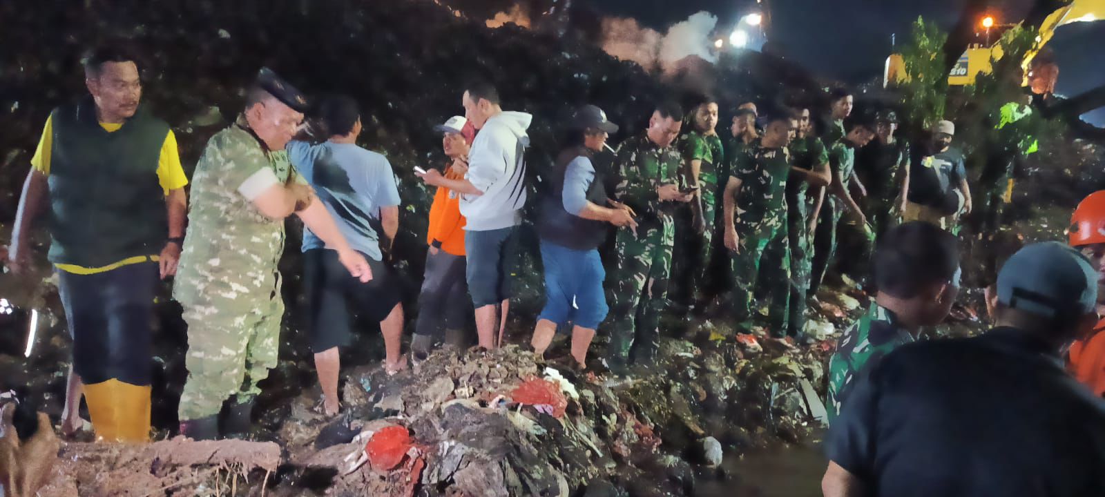 Kodim 0507/Bekasi Bersama Tim SAR Gabungan Lakukan Evakuasi Korban Longsor di TPST Bantar Gebang