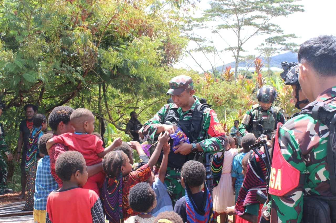 Kodim 1714/Puncak Jaya Peduli Pengungsi dan Salurkan Bantuan Kemanusiaan di Kampung Tirineri