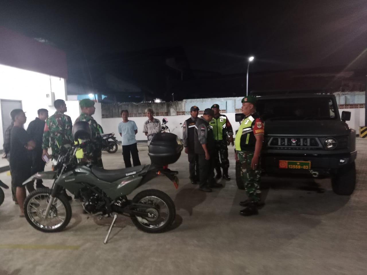 Koramil 03/Teluk Pucung Gelar Patroli Mitigasi dan Siskamling Bersama Komduk dan Komcad Jaga Stabilitas Wilayah