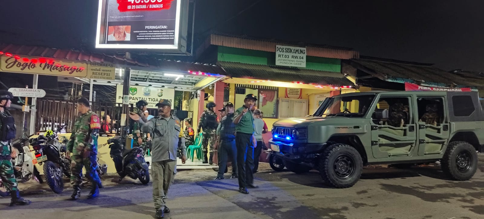 Kegiatan yang dimulai pukul 21.00 WIB hingga selesai tersebut berlangsung di wilayah Koramil 02/Pondok Gede dan dipimpin langsung oleh Babinsa Serka Nurdin. Patroli melibatkan kekuatan gabungan sebanyak 29 personel, terdiri dari unsur TNI, Polri, Linmas, Mitra Jaya, dan Pokdar, dengan dukungan kendaraan Randis Maung, sepeda motor dinas, serta kendaraan roda dua masyarakat.