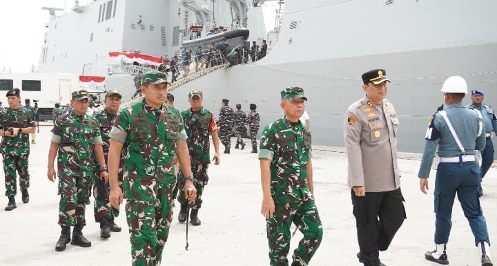 EdithNews.com (Jakarta Utara) – Komandan Kodim 0502/JU Kolonel Inf Dony Gredinand, S.H., M.Tr.(Han)., M.I.Pol. mendampingi Komandan Korem 052/Wijayakrama Brigjen TNI Zulhadrie S. Mara, M.Han. dalam kegiatan monitoring pengamanan acara penyambutan dan penyerahan KRI Brawijaya-320 kepada Koarmada II di Dermaga 107 Pelabuhan Tanjung Priok, Jakarta Utara. Senin (08/09/2025).