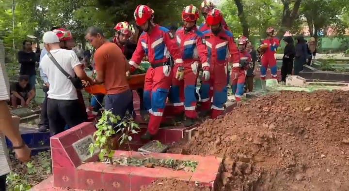 Proses pemakaman berlangsung lancar berkat koordinasi antara keluarga, pengurus makam, dan tim penyelamat.