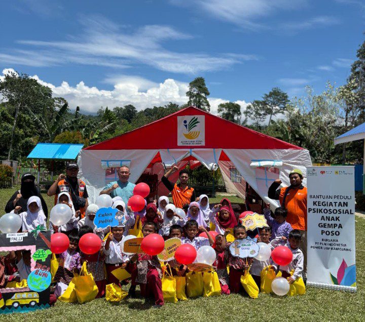 EdithNews.com (Poso, Sulawesi Tengah) — PLN Indonesia Power UBP Kamojang melalui program PLN Peduli bekerja sama dengan Tim Respon Cepat (TRC) Relawan Rumah Zakat Palu menggelar Layanan Dukungan Psikososial (LDP) bagi anak-anak penyintas gempa bumi berkekuatan 6,0 SR yang mengguncang Kabupaten Poso. Kegiatan ini dilaksanakan di dua sekolah, yaitu TK dan SD Al Khairat Lape serta SMP Negeri 2 Poso Pesisir, dengan total 70 anak penerima manfaat.