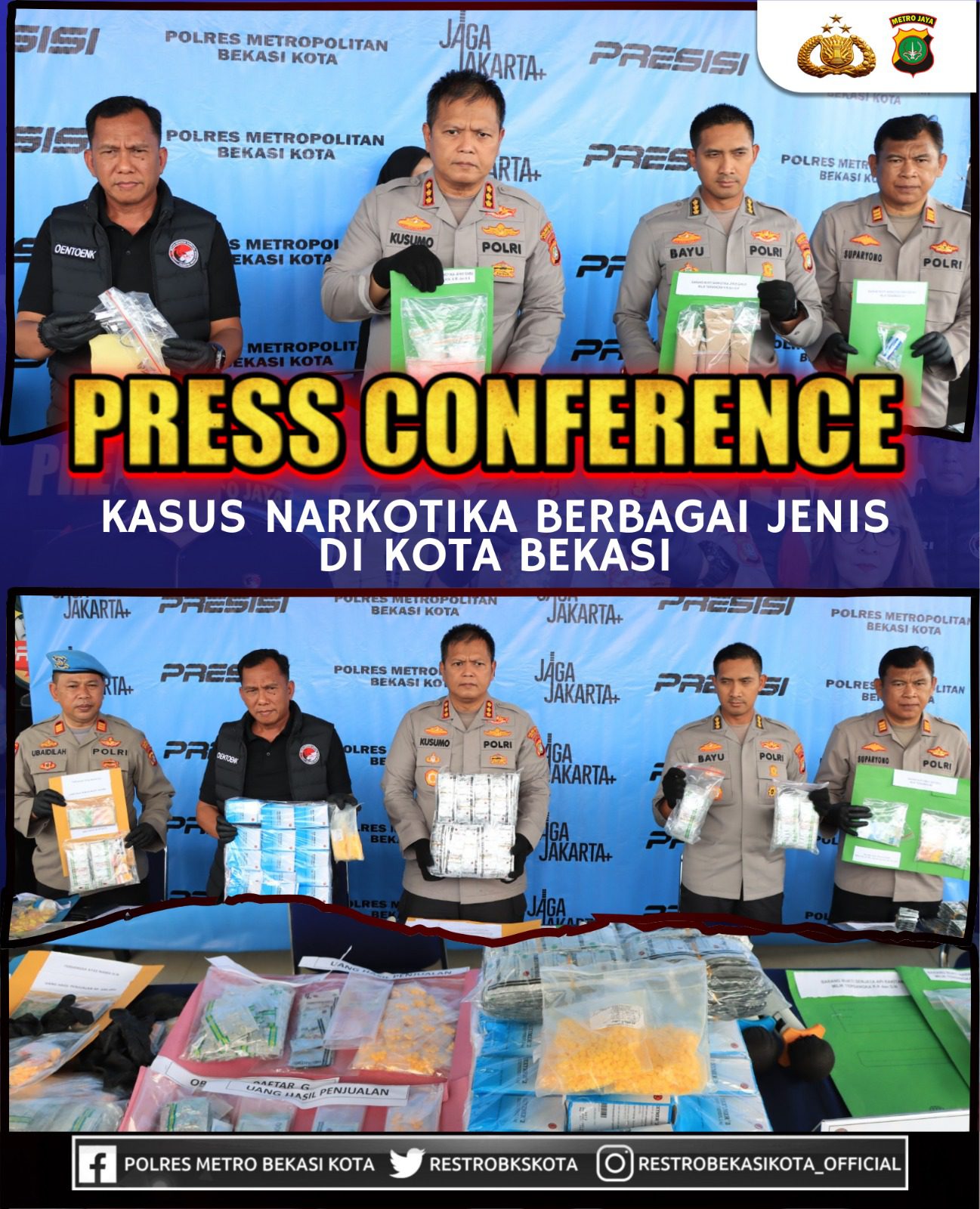 EdithNews.com (Kota Bekasi) – Polres Metro Bekasi Kota mengungkap sejumlah kasus tindak pidana peredaran narkotika berbagai jenis di wilayah Kota Bekasi.