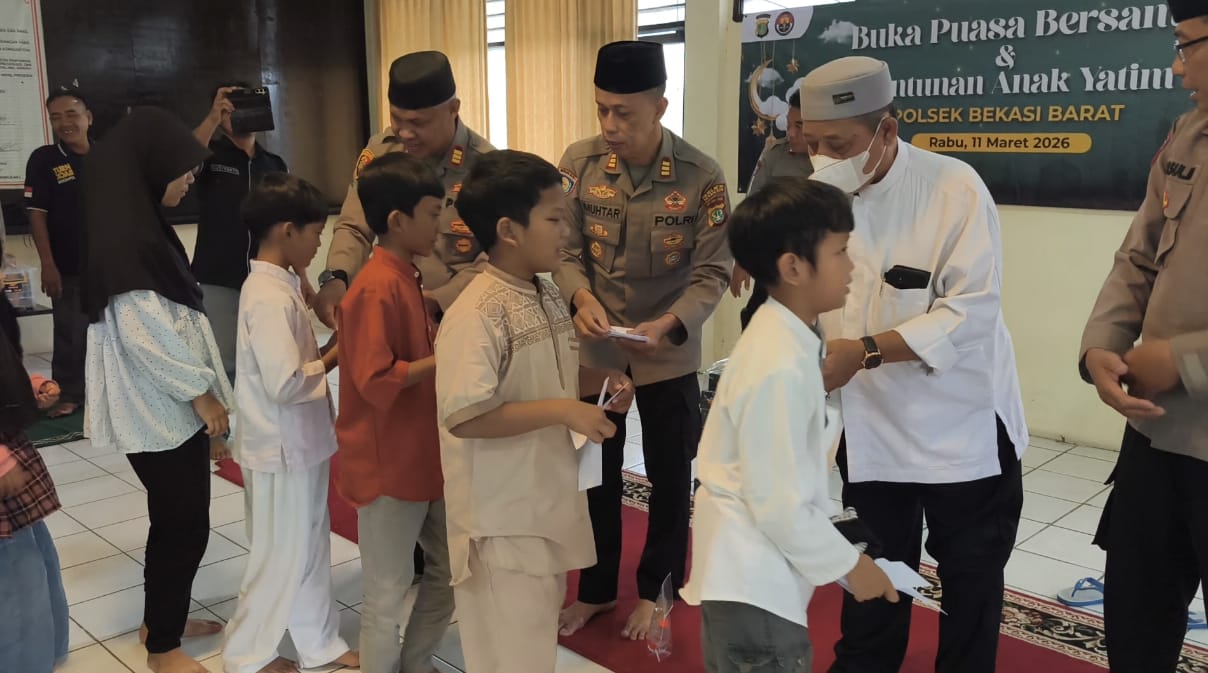 EdithNews.com (Kota Bekasi) – Semangat berbagi di bulan suci Ramadan ditunjukkan oleh jajaran Polsek Bekasi Barat dengan menggelar kegiatan santunan anak yatim sekaligus buka puasa bersama pada Rabu, 11 Maret 2026. Kegiatan yang berlangsung penuh kehangatan tersebut digelar di Aula Lantai 3 Mapolsek Bekasi Barat.