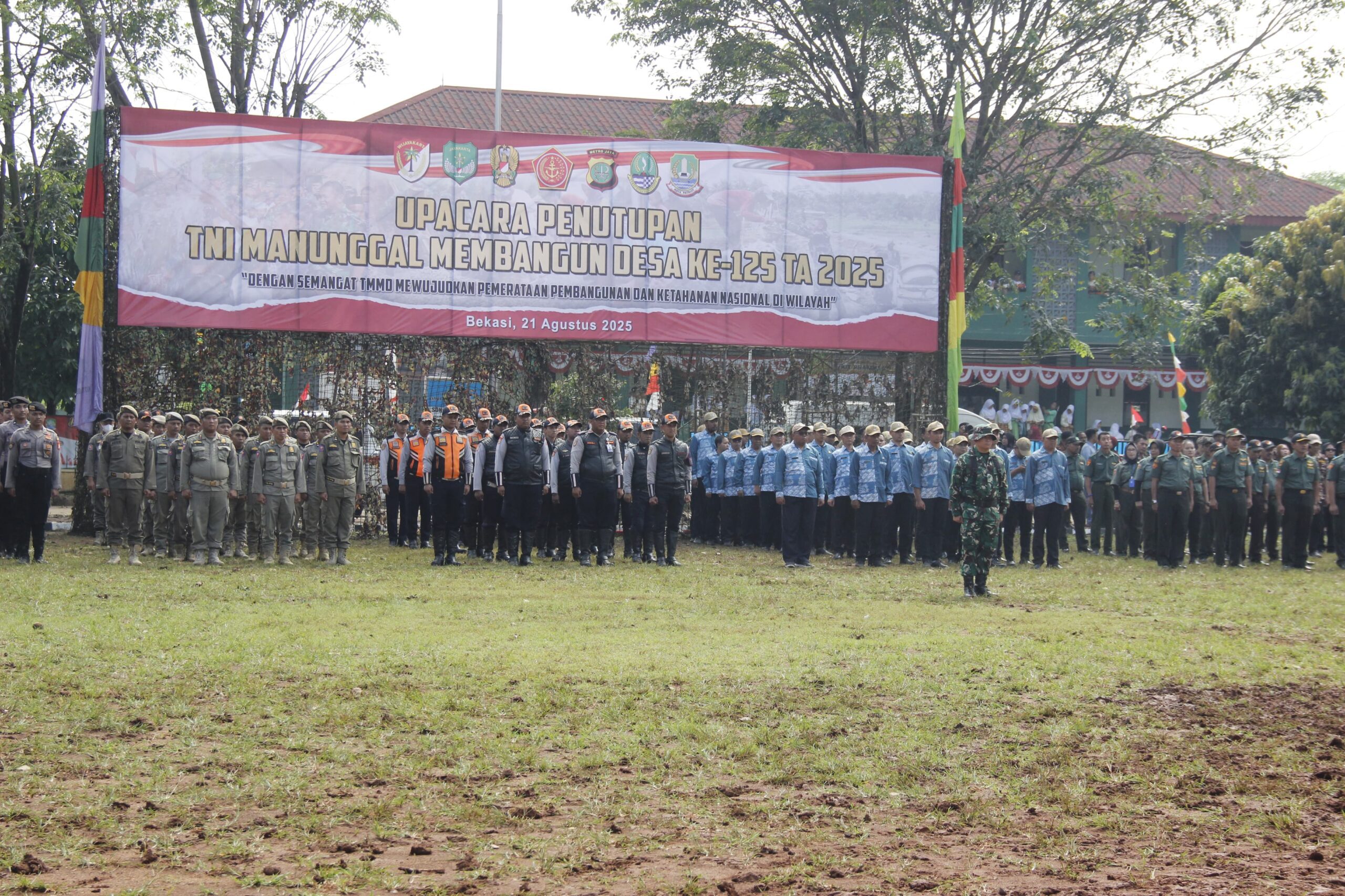 EdithNews.com (Kodam Jaya, Kota Bekasi) – TNI Manunggal Membangun Desa (TMMD) Reguler ke-125 Tahun Anggaran 2025 tingkat Kodim 0507/Bekasi resmi ditutup, Kamis (21/8/2025), di Lapangan Sepak Bola Kelurahan Pedurenan, Kecamatan Mustikajaya, Kota Bekasi.