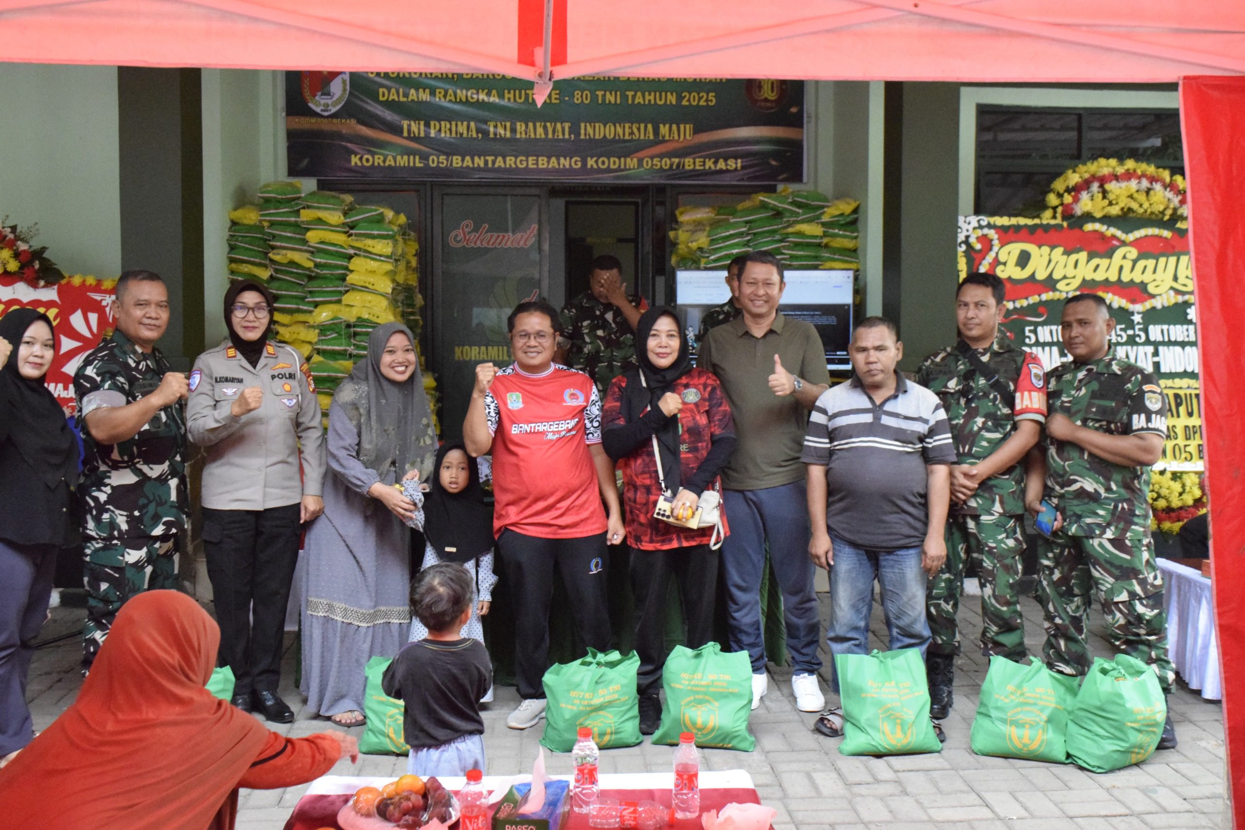 Wujud Syukur HUT ke-80 TNI, Koramil 05/Bantargebang Gelar Tasyakuran, Baksos, dan Bazar Beras Murah untuk Warga