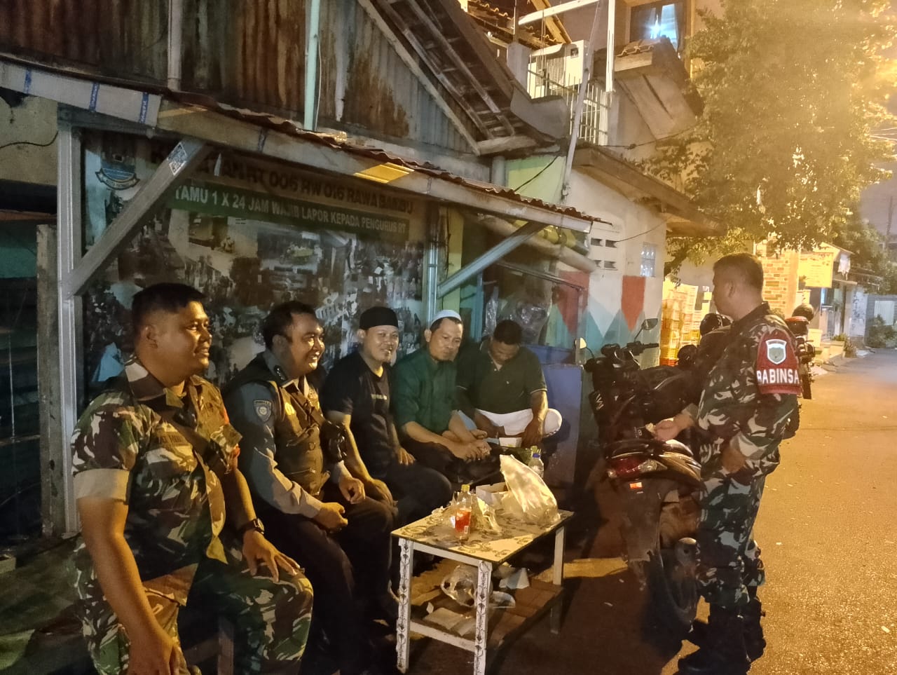 Wujudkan Lingkungan Aman dan Guyub, Babinsa Koramil 03/Teluk Pucung Bersama tiga pilar dan Komduk Rutinkan Patroli dan Monitoring Siskamling di Harapan Jaya