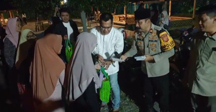 Usai buka puasa, panitia kemudian membagikan bingkisan serta santunan kepada sekitar 100 anak yatim dan warga duafa yang hadir dalam kegiatan tersebut.